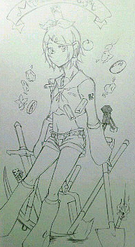 マイクラのスキンが自作りんちゃんなので基本ツール一式とかたいまつとかアイテムとかばら撒いてみた 記憶だけで描こうとした敵性MOBが全く描けなかったという罠…OH…