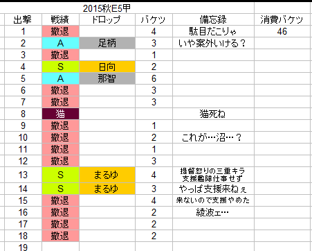 そしてその先の戦況については上図の通りです バケツが蒸発していく…あと300は使い込む気でいるけど大丈夫だろうか 資源は何も問題ない燃弾各13万残ってる余裕