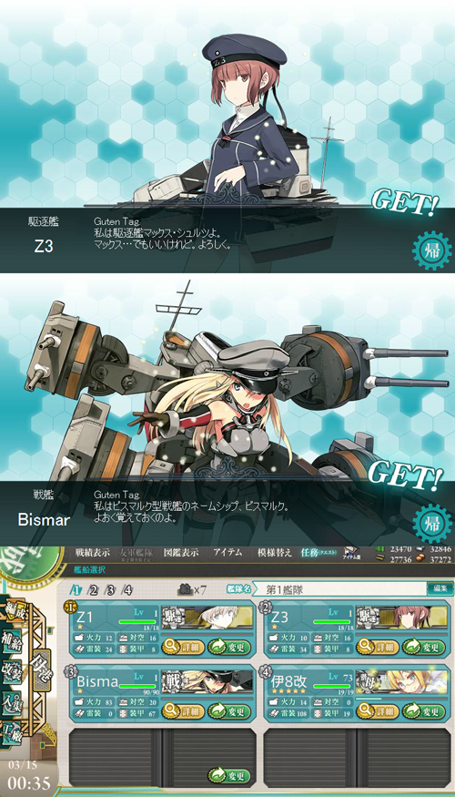 Z3ちゃん出すまでにあの日あれだけ渇望した雪風が二人も出るという虚しい事件もありましたが、8ちゃんつけてドイツ艦隊完成です。そだてう。