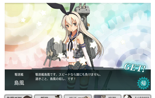 テンション上がって育てる!!!!!と思って連れ出して危うく轟沈させかけたのは秘密です ふう応急修復つけておいて正解だったぜ…今まだレベル7しかないからな、大事に育てねばな とりあえず早く演習相手更新しておくれやす